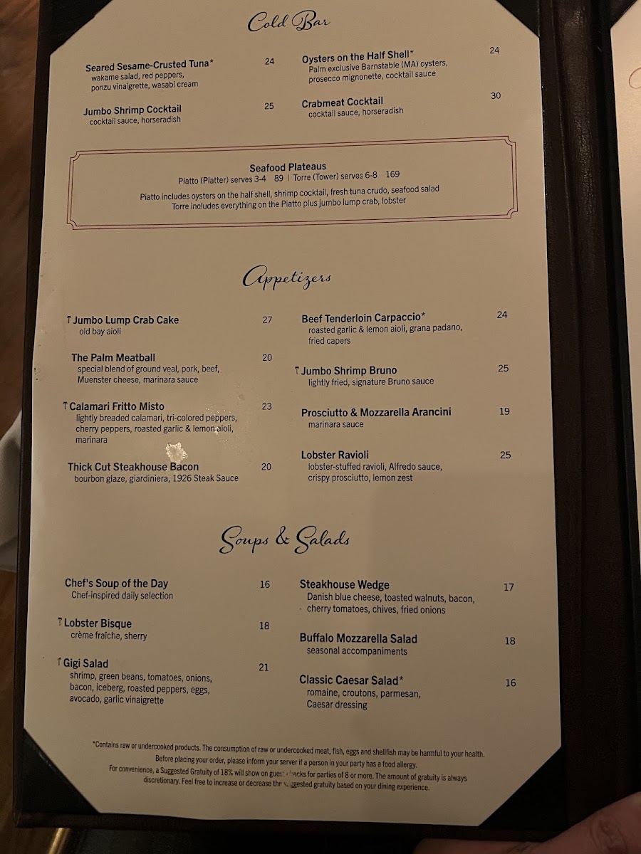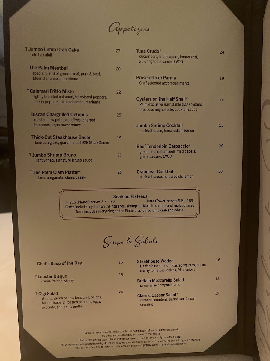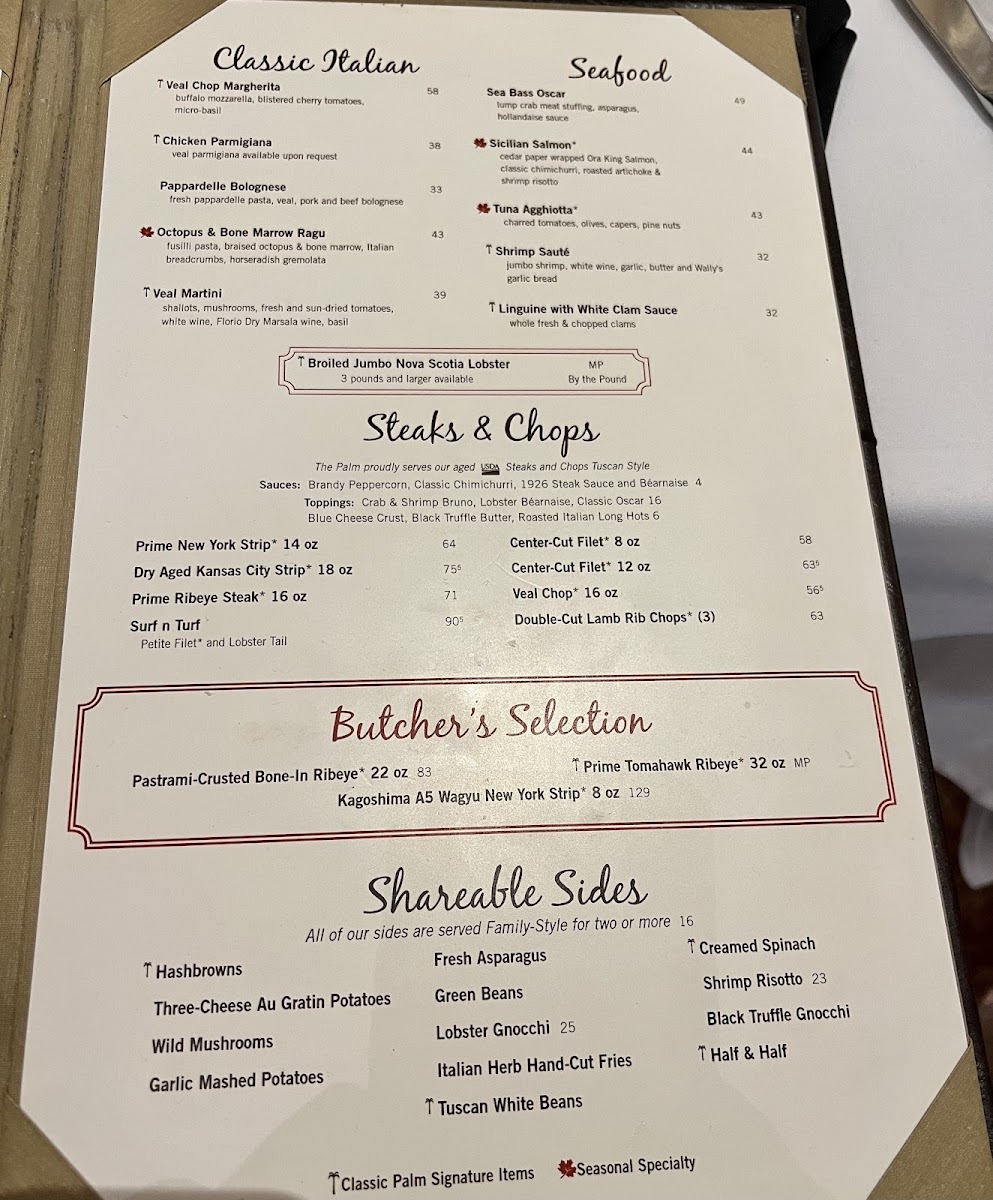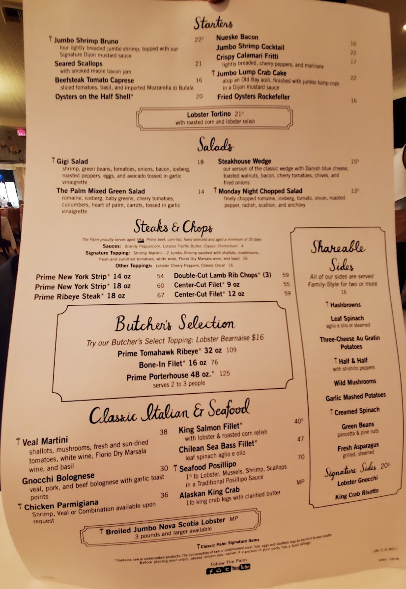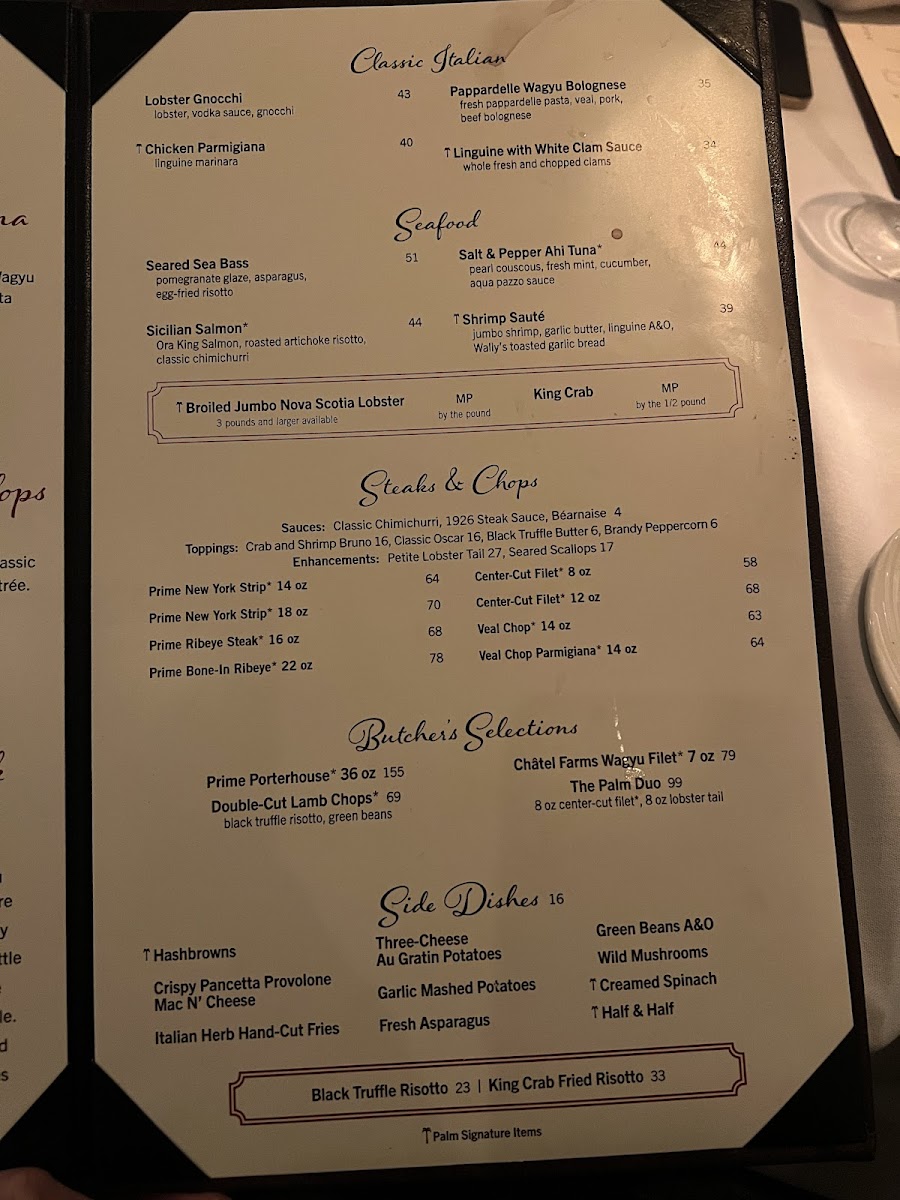 The Palm - Las Vegas Menu